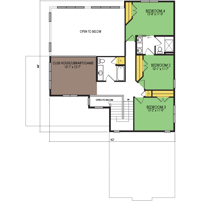 A part of our Vacation Series, the Burntside floor plan features 4 bedrooms and 3.5 bathrooms with a foot print of 42x66 feet and 2635 total square feet of living space. Floor Plan #VL370
