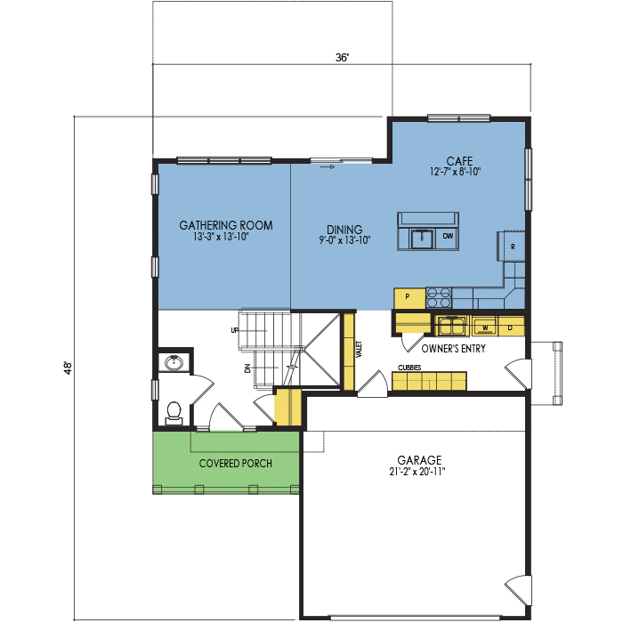 A part of our dream series, the tamarack floor plan features 3 bedrooms and 1.5 bathrooms with a foot print of 44x30 feet and 1342 total square feet of living space.