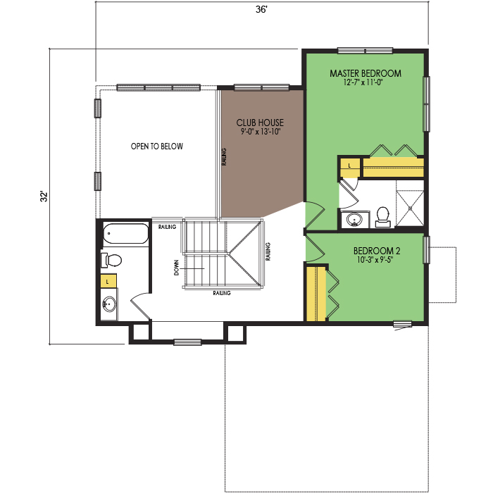 A part of our Vacation Series, the Castle Rock floor plan features 2 bedrooms and 2.5 bathrooms with a foot print of 36x48 feet and 1743 total square feet of living space. Floor Plan #VL230
