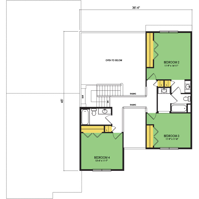 A part of our dream series, the tamarack floor plan features 3 bedrooms and 1.5 bathrooms with a foot print of 44x30 feet and 1342 total square feet of living space.