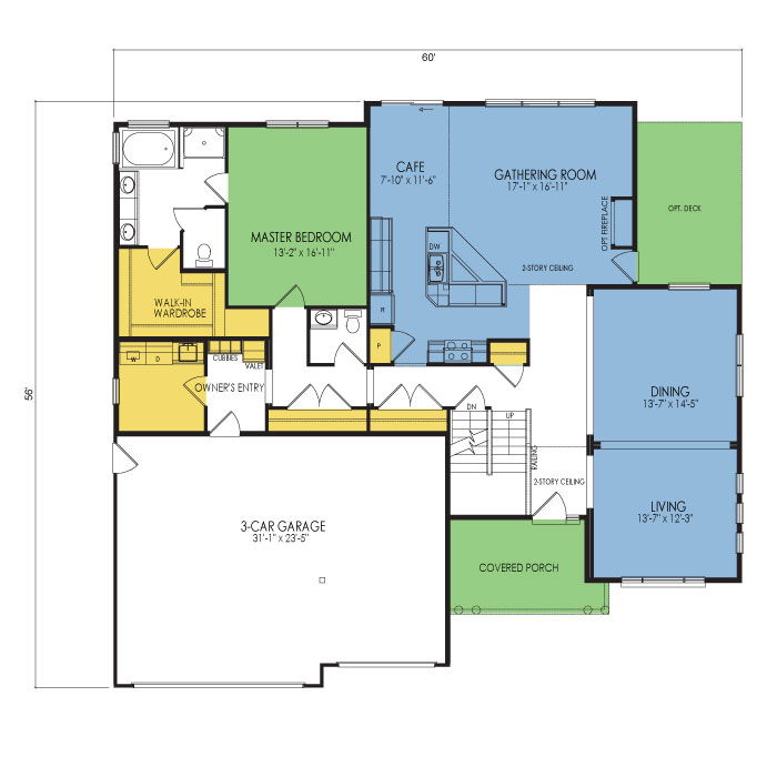 A part of our Designer Series, the Pine Valley floor plan features 4 bedrooms and 3.5 bathrooms with a foot print of 60x56 feet and 2969 total square feet of living space. Floor Plan #DT364