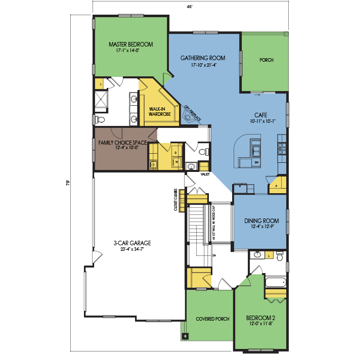 A part of our Resort Series, the Sinverthrone floor plan features 2 bedrooms and 2.5 bathrooms with a foot print of 46x71 feet and 2295 total square feet of living space. Floor Plan #RT157