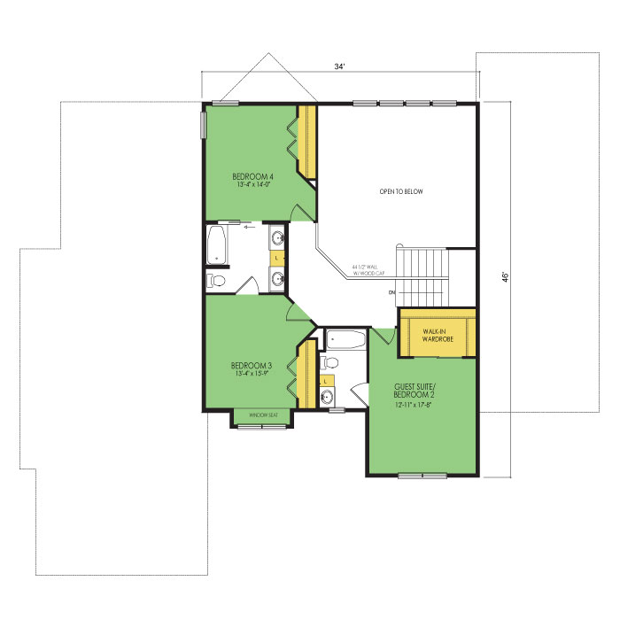A part of our dream series, the tamarack floor plan features 3 bedrooms and 1.5 bathrooms with a foot print of 44x30 feet and 1342 total square feet of living space.